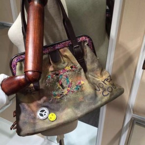 - Washed Fabric messenger bag with an embroidered cc signature.