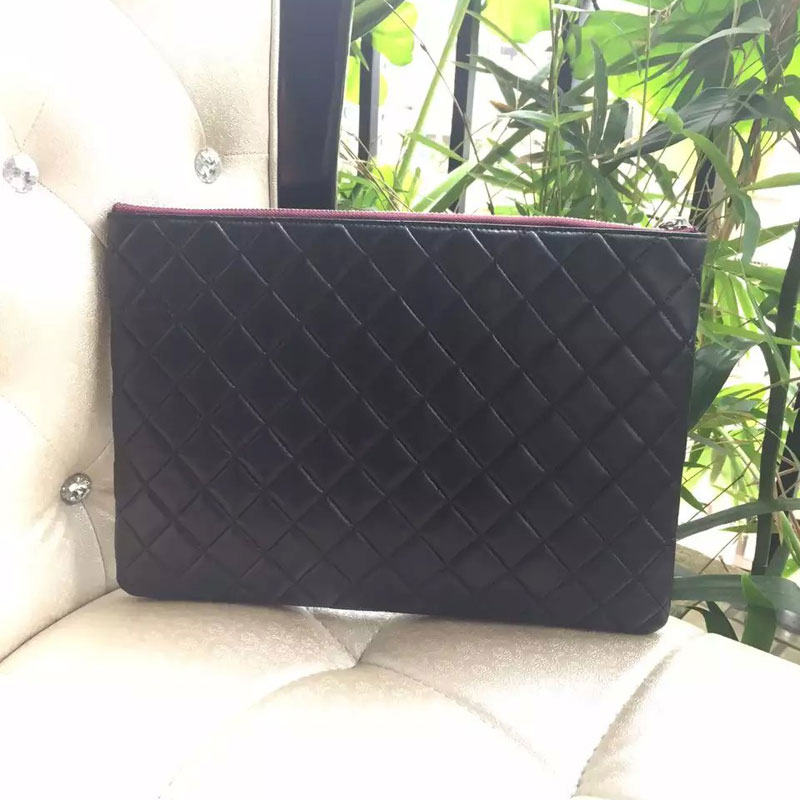 2015 Chanel iPad A4 Bag Original Sheepskin Leather A82089 Black with Silver