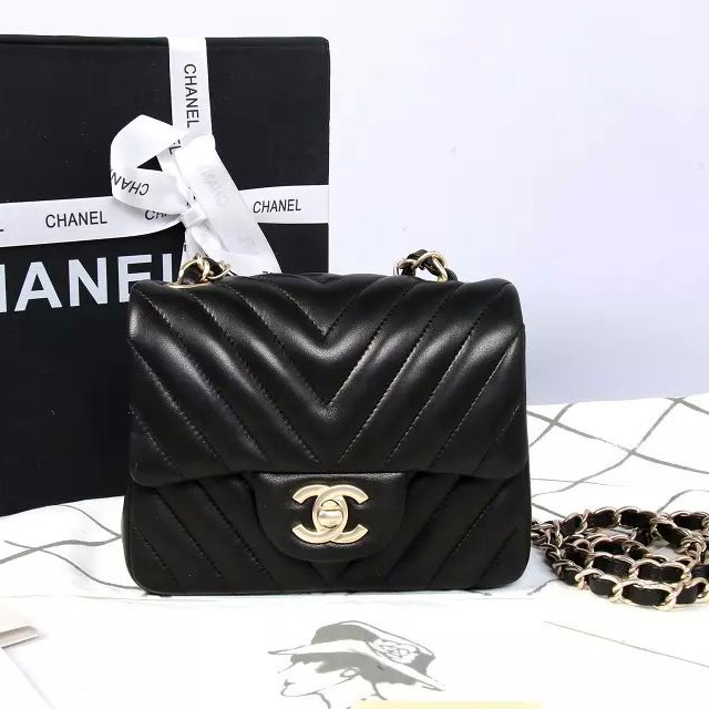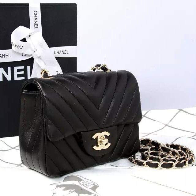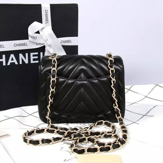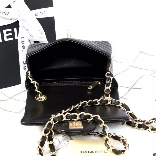 2015 Chanel mini Classic Flap Bag Black Original Sheekskin leather A1115 Gold
