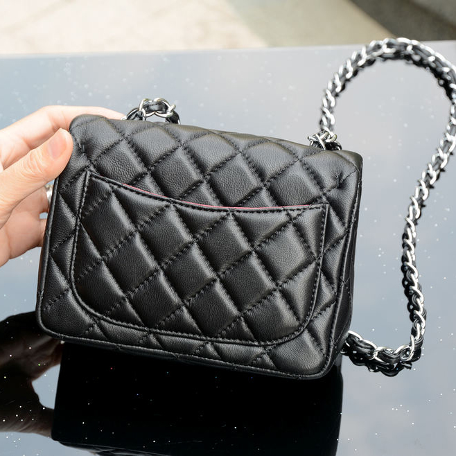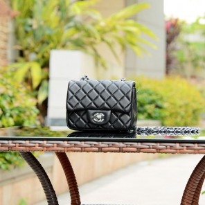2015 Chanel mini Classic Flap Bag Black Sheepskin leather A37585 Silver