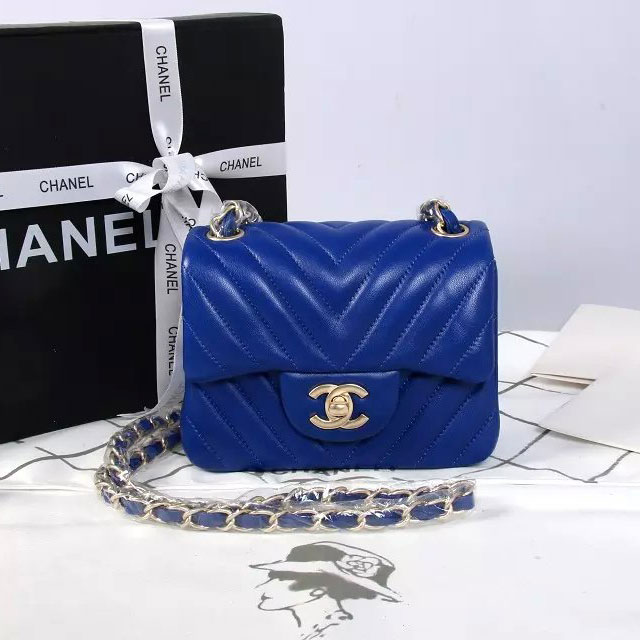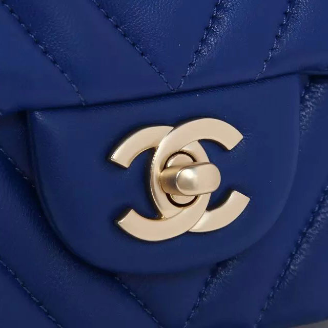 2015 Chanel mini Classic Flap Bag Blue Original Sheekskin leather A1115 Gold