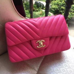 2015 Chanel mini Classic Flap Bag Rose Original Sheekskin A1116 Gold
