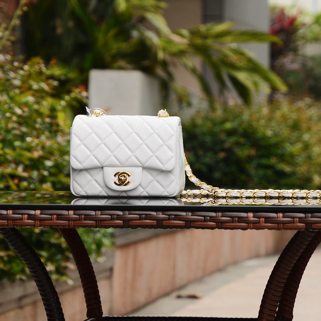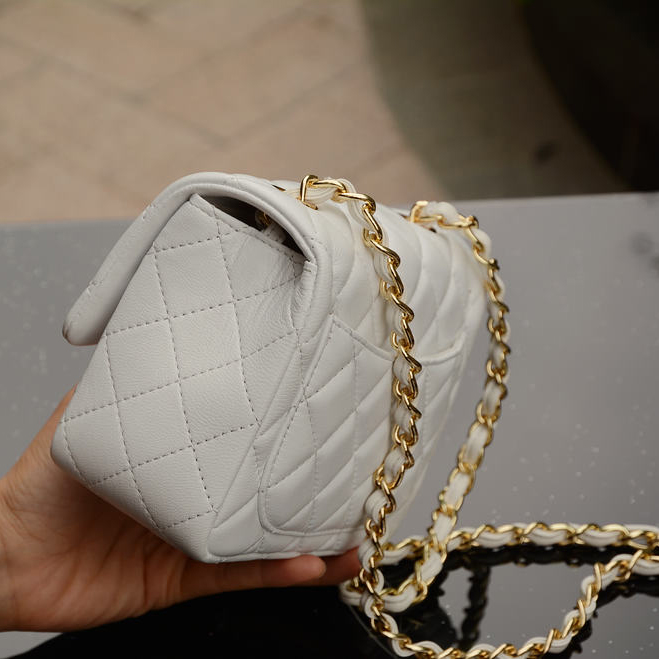 2015 Chanel mini Classic Flap Bag White Sheepskin leather A37585 Gold
