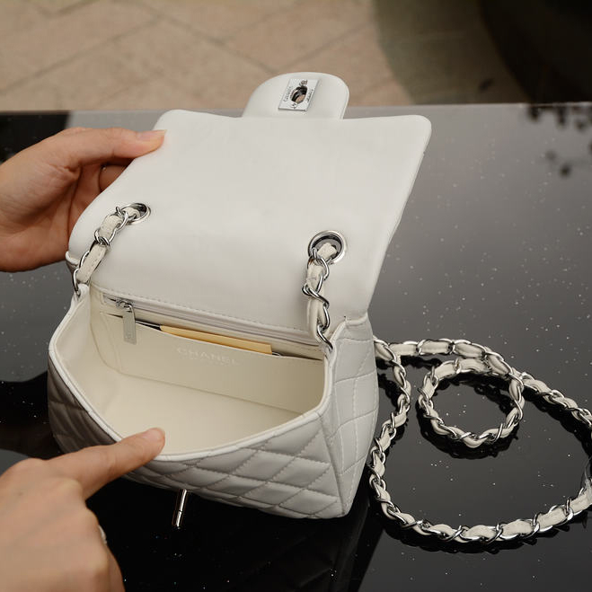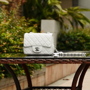 2015 Chanel mini Classic Flap Bag White Sheepskin leather A37585 Silver