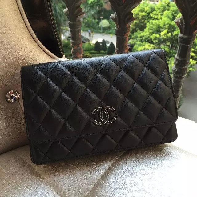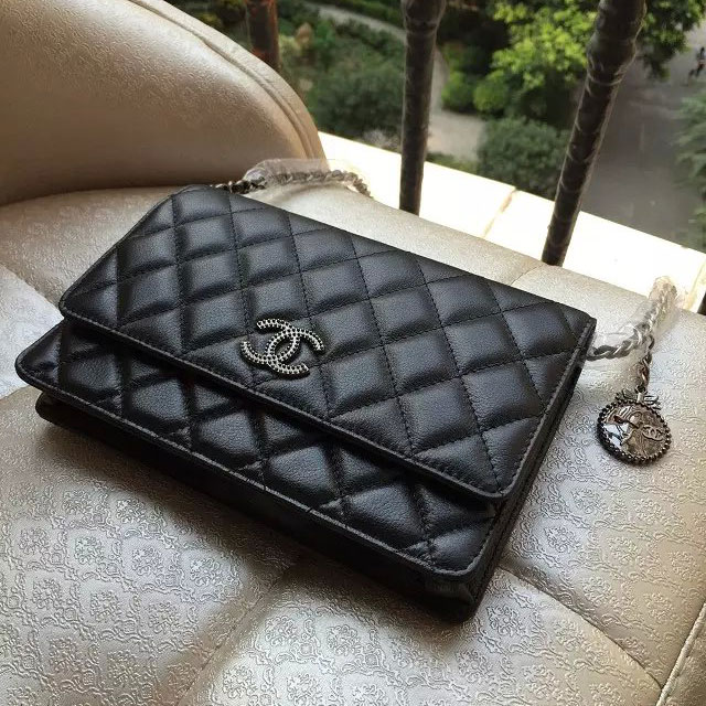 2015 Chanel mini Flap Bag Original Leather A80248 Black with Silver