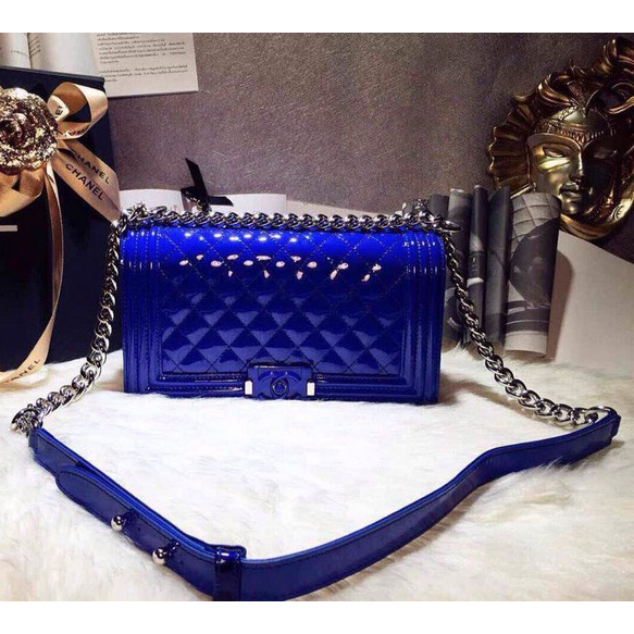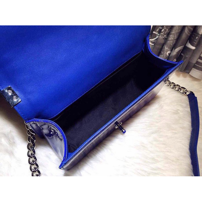 2015 LEY Boy Chanel A67086 Flap Shoulder Bag Original Patent Leather Blue