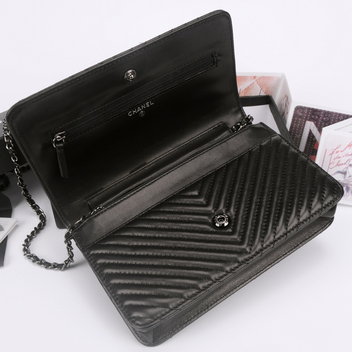 2016 Chanel A33814 Black Sheepskin Leather Mini Flap Bag