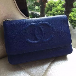 2016 Chanel A33814 Blue Original Leather Mini Flap Bag Silver