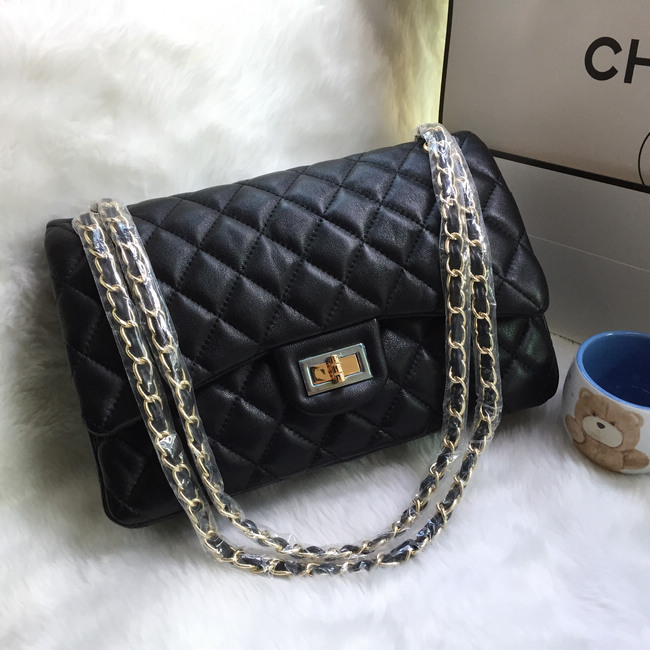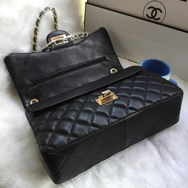 2016 Chanel A58600 Caviar leather Classic Flap Bag in Black with Gold