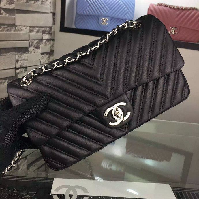 2016 Chanel A92085 Shoulder Bag Original lambskin Leather Black with Silver