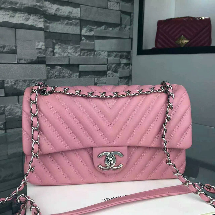 2016 Chanel A92085 Shoulder Bag Original lambskin Leather Pink with Silver