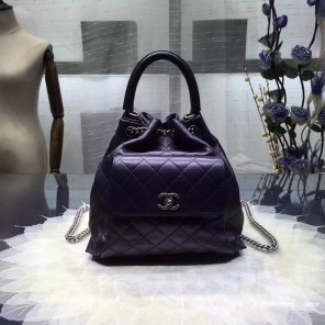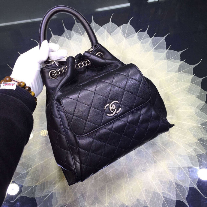 2016 Chanel A93881 Calfskin Leather Drawstring Bag With Handle Black