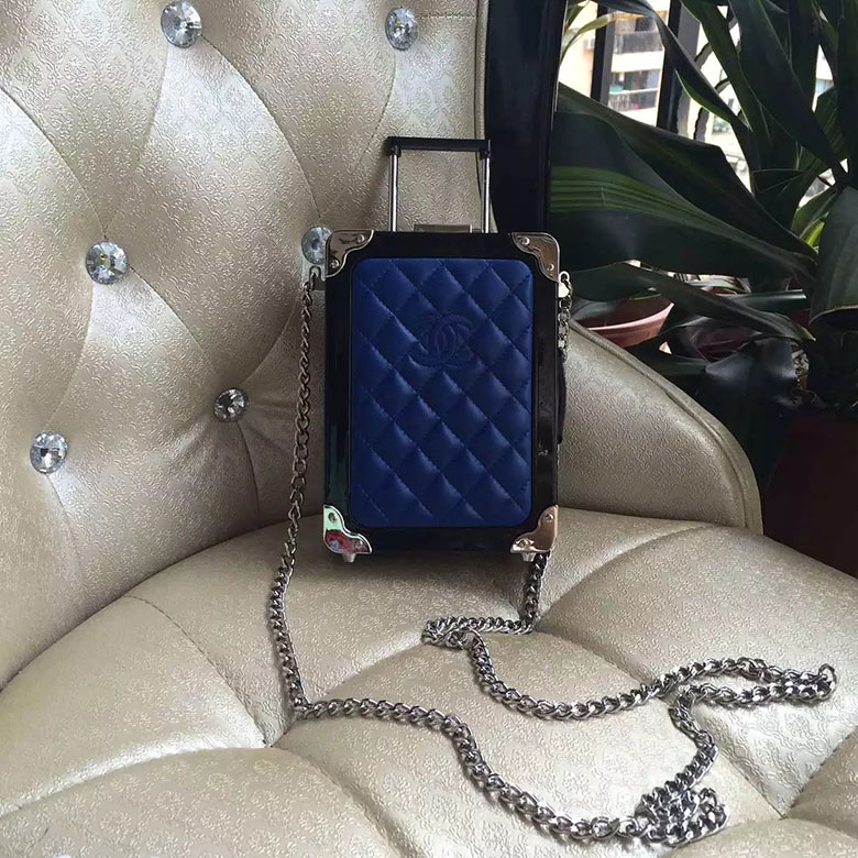 2016 Chanel A94634 Blue Makeup Box with Silver hardware