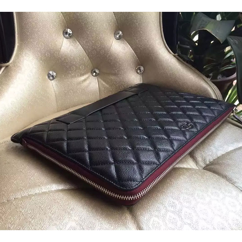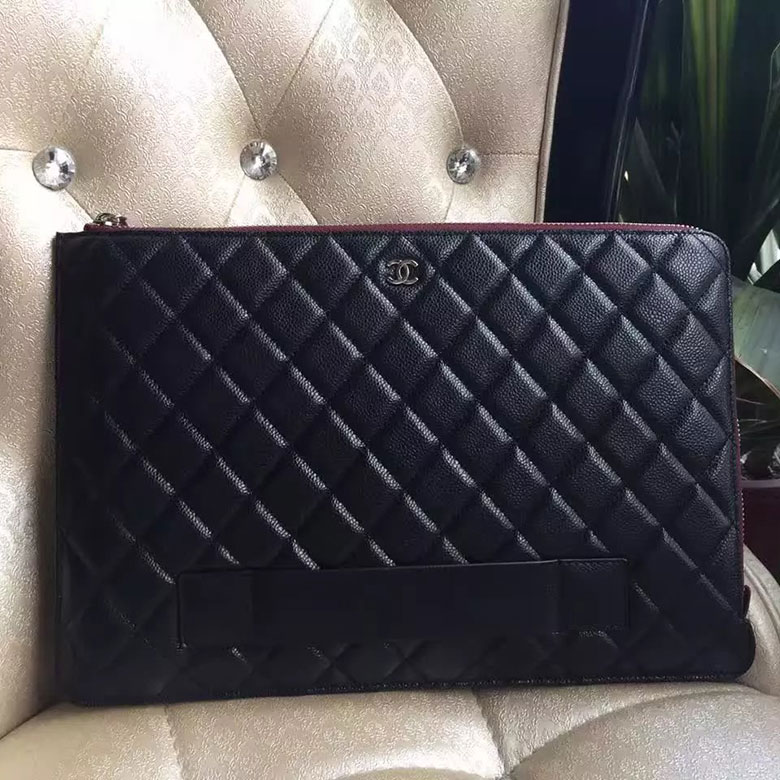 2016 Chanel Banquet Clutch Original Caviar Leather A82389 Black with Silver