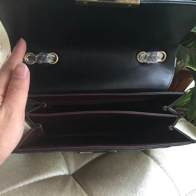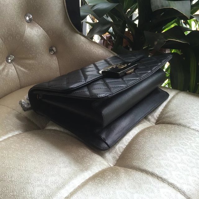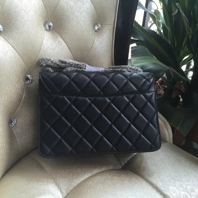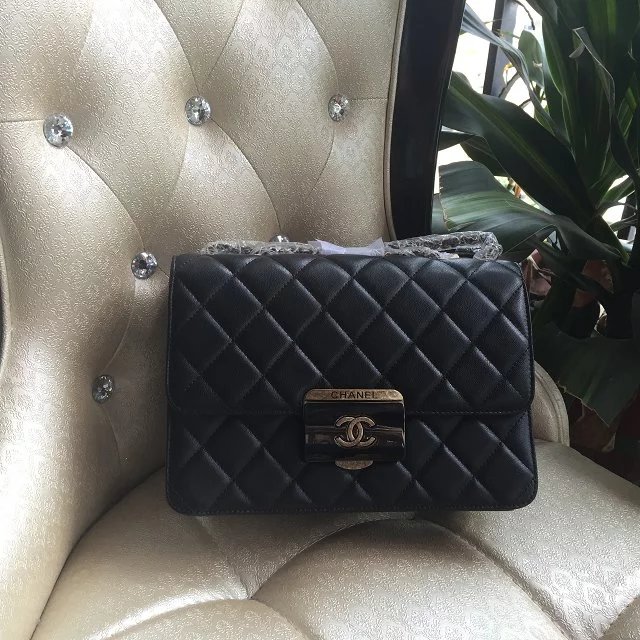2016 Chanel Black Sheepskin Leather Chain shoulder Flap bag A93222