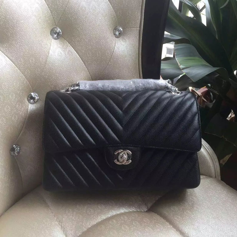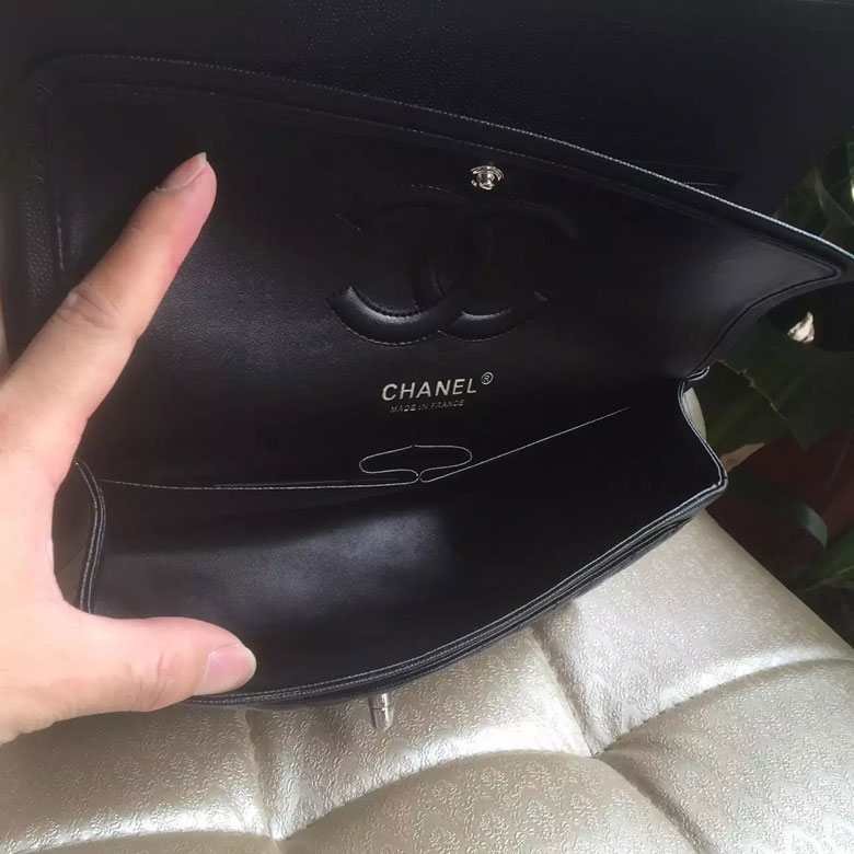 2016 Chanel CF Original Leather Classic Flap Bag 1112 Black Silver