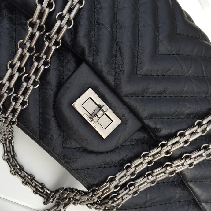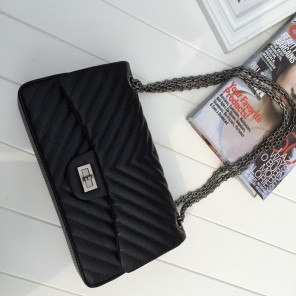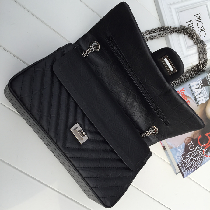 2016 Chanel Calfskin Leather Classic Flap Bag A30225 Black in Silver