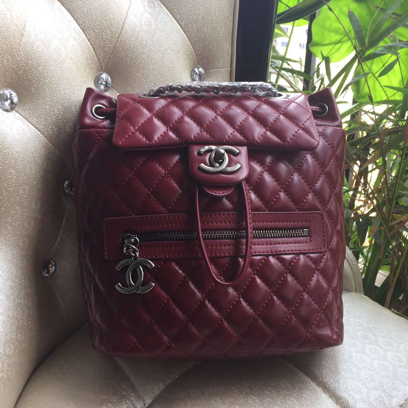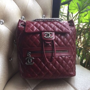 2016 Chanel Claret Original Leather Backpack Embellished With a cc Signature