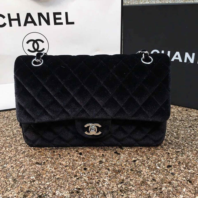2016 Chanel Classic Flap Bag 1112 Original Black velvet with Silver
