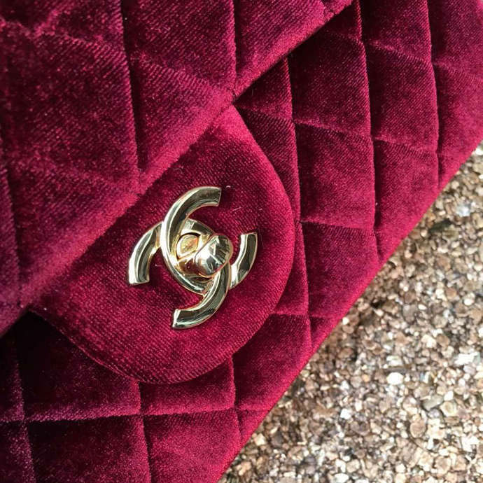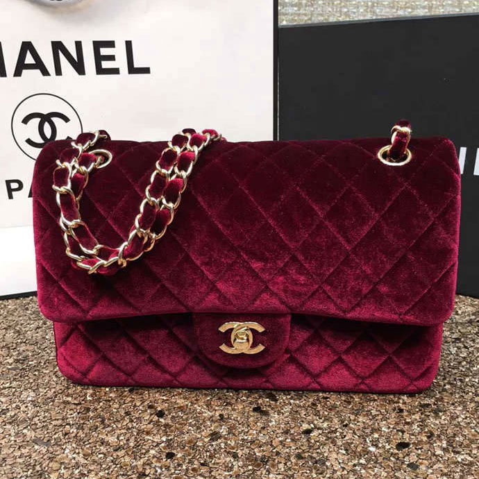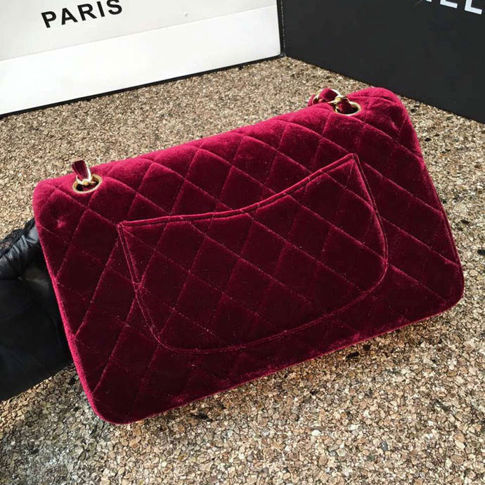 2016 Chanel Classic Flap Bag 1112 Original Claret velvet with Gold