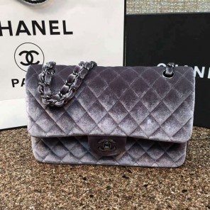 2016 Chanel Classic Flap Bag 1112 Original Gray velvet with Black Polished