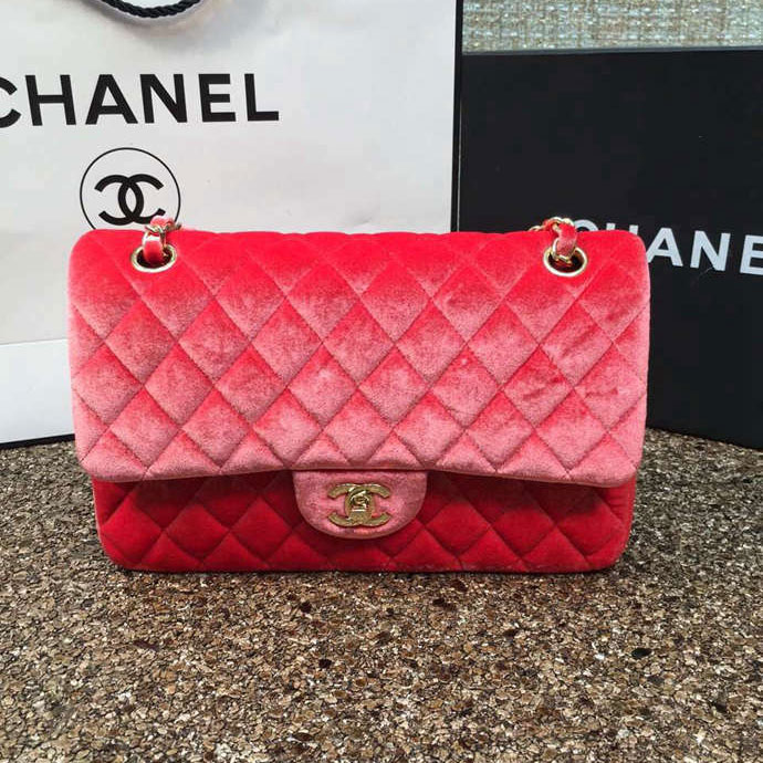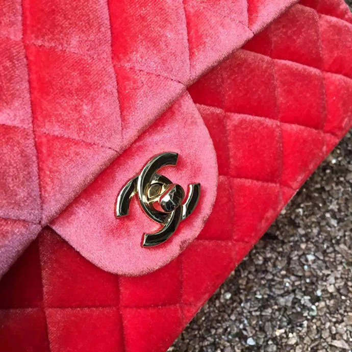 2016 Chanel Classic Flap Bag 1112 Original Orange velvet with Gold