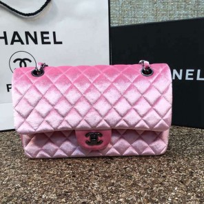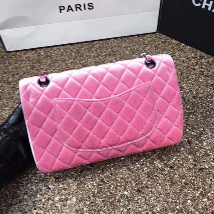 2016 Chanel Classic Flap Bag 1112 Original Pink velvet with Black Polished