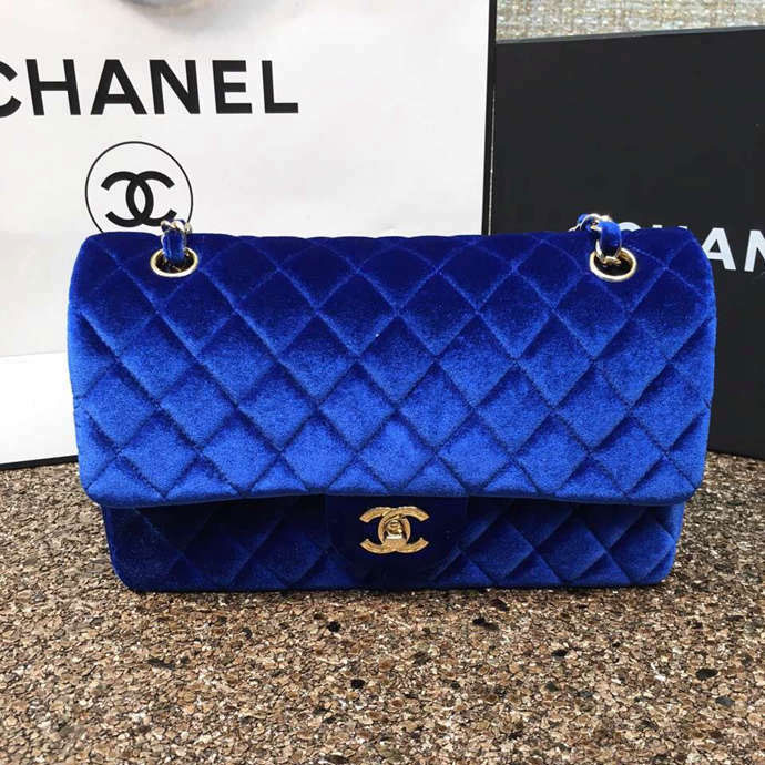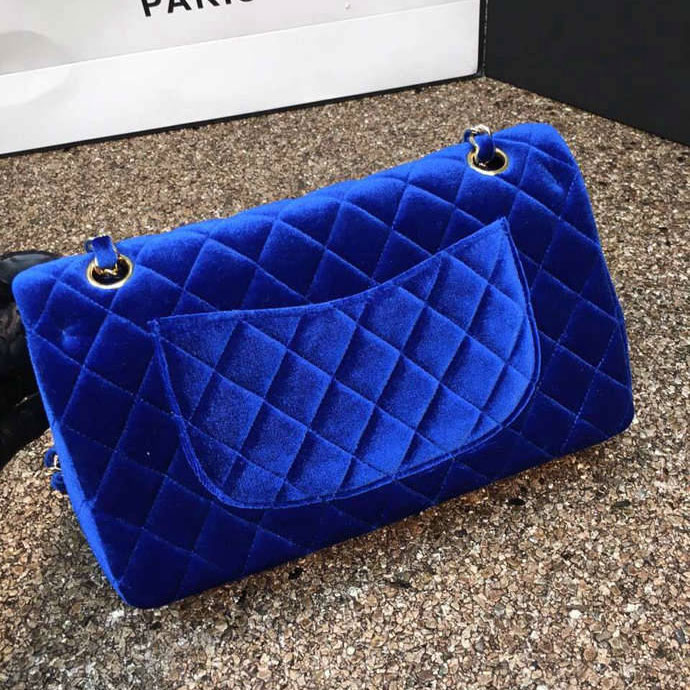2016 Chanel Classic Flap Bag 1112 Original Royalblue velvet with Gold