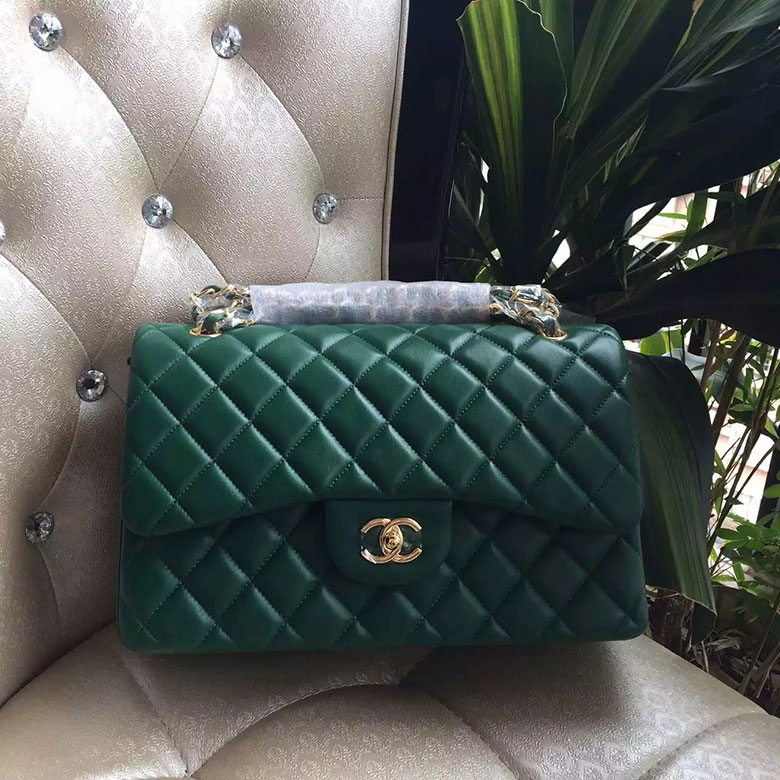 2016 Chanel Classic Flap Bag 1113 Green Original Sheekskin leather Gold Hardware