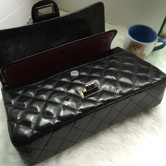 2016 Chanel Classic Flap Bag 1113 Shiny Iridescent Leather in Black