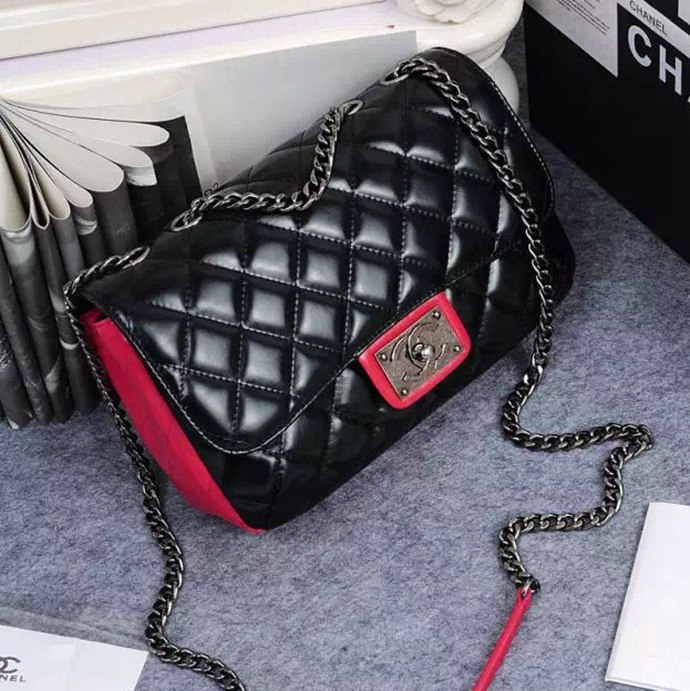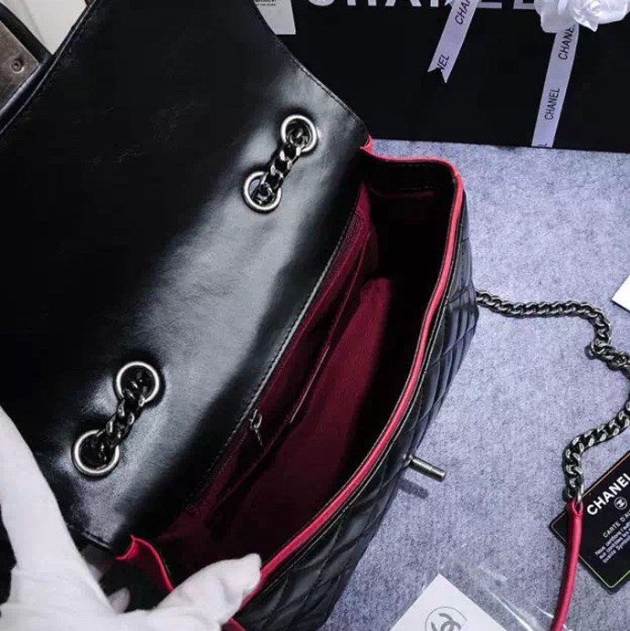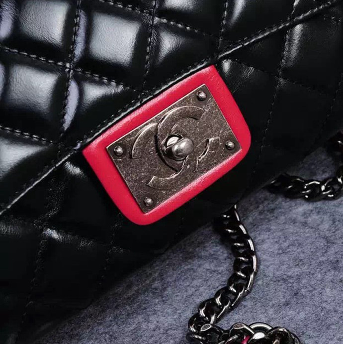 2016 Chanel Classic Flap Bag Original Calfskin Leather A92760 Black&Red