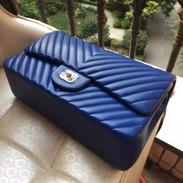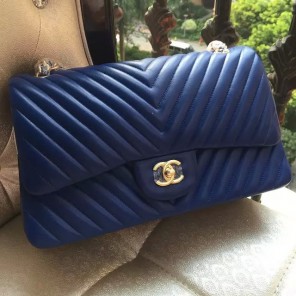 2016 Chanel Classic Flap Bag Original Sheepskin Leather 1113 Blue with Gold