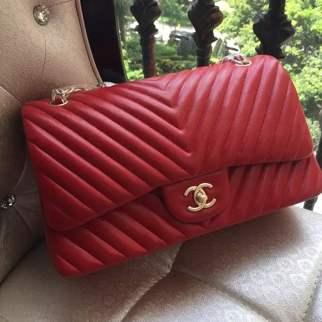 2016 Chanel Classic Flap Bag Original Sheepskin Leather 1113 Red with Gold