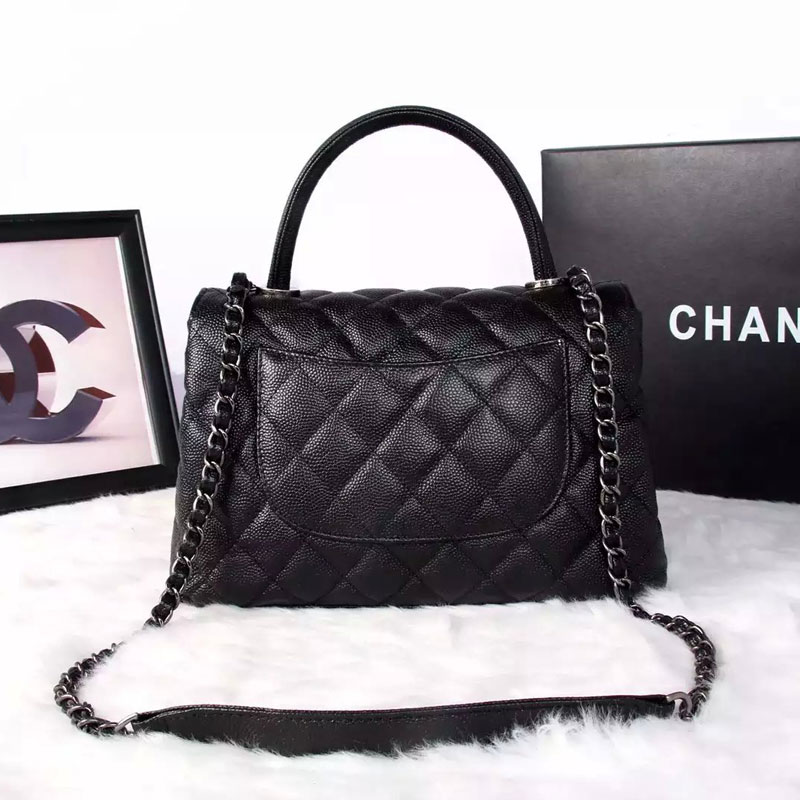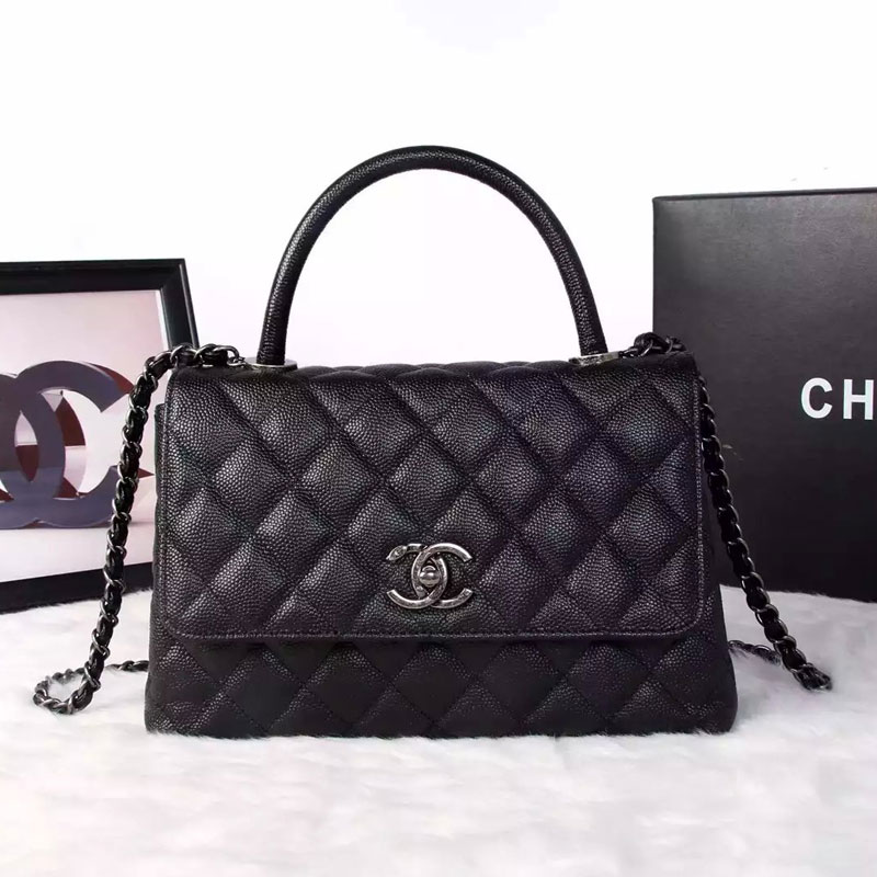 2016 Chanel Classic Top Handle Bag Original Caviar Leather A1871 Black
