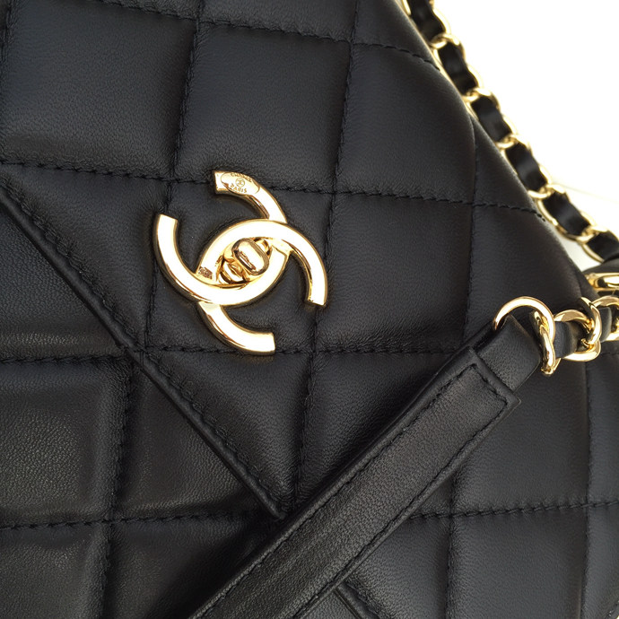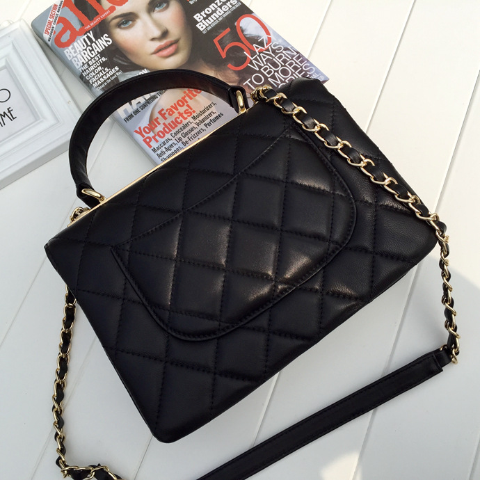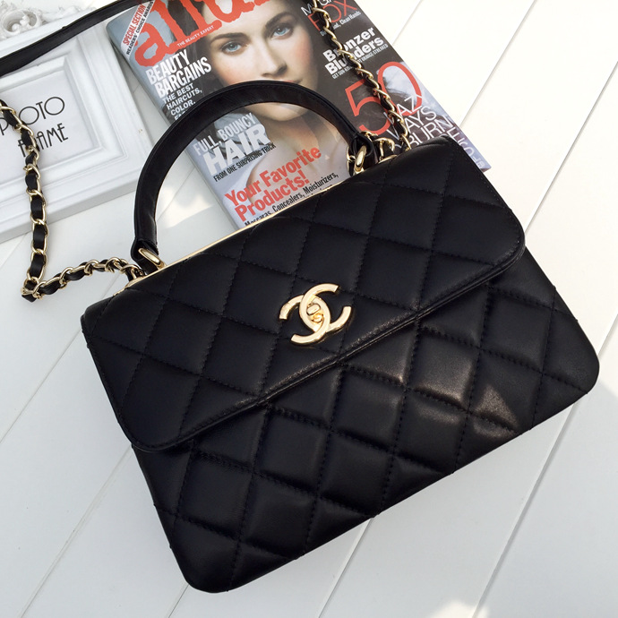 2016 Chanel Classic Top Handle Bag Sheepskin Leather A92236 Black with Gold