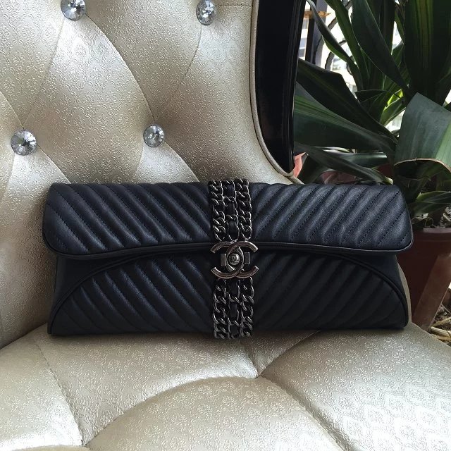 2016 Chanel Clutch Evening Bag Original Sheepskin Leather A94347 Black