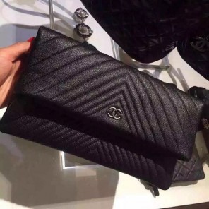 2016 Chanel Clutch bag Real deer Leather A67011 Black