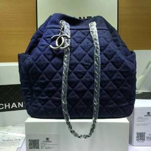 2016 Chanel Denim Fabric Hobo Bag A91136 Dark Blue