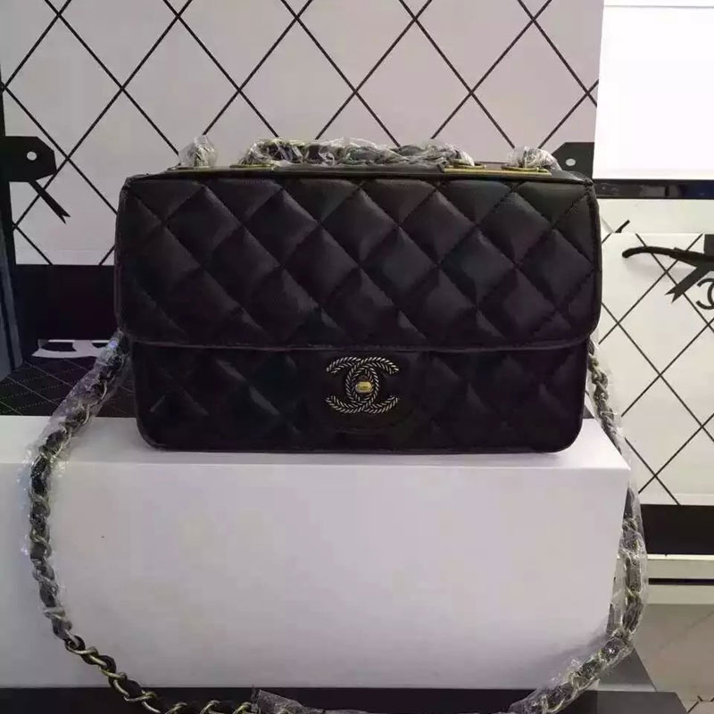2016 Chanel Flap Shoulder Bag Sheepskin Leather A68022 Black