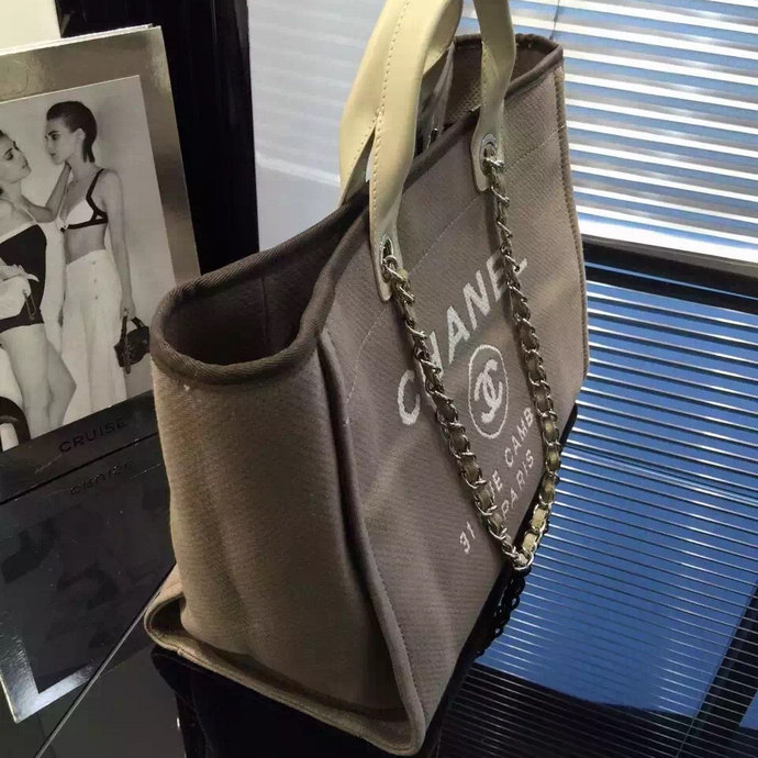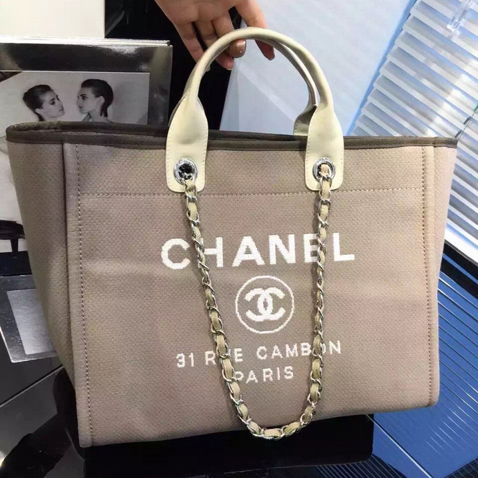 • 2016 Chanel Large Canvas Tote Shopping Bag A68046 Apricot