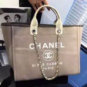 2016 Chanel Large Canvas Tote Shopping Bag A68046 Apricot