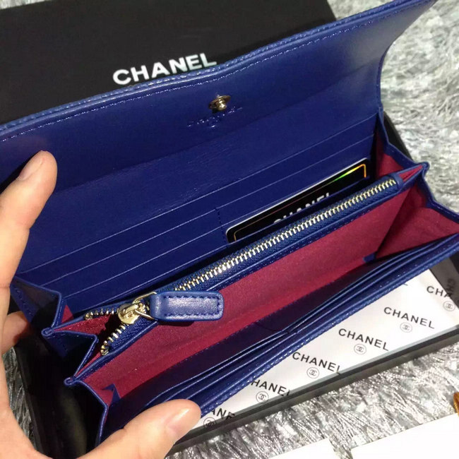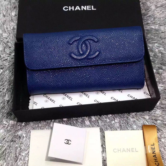 2016 Chanel Matelasse Bi-Fold Wallet Caviar Leather A50096 Blue