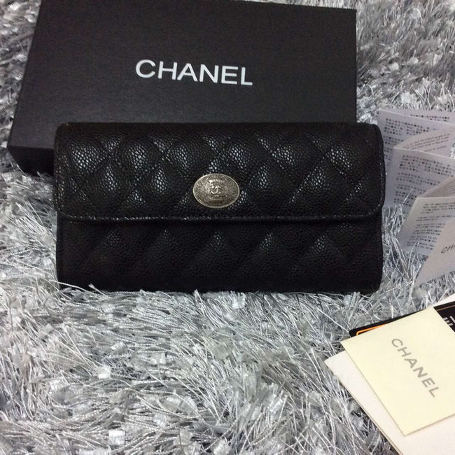 2016 Chanel Matelasse Bi-Fold Wallet Caviar Leather A69366 Black