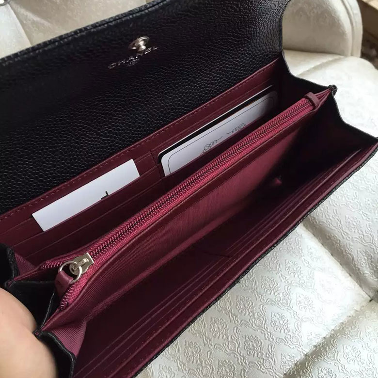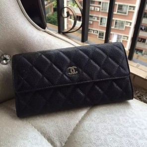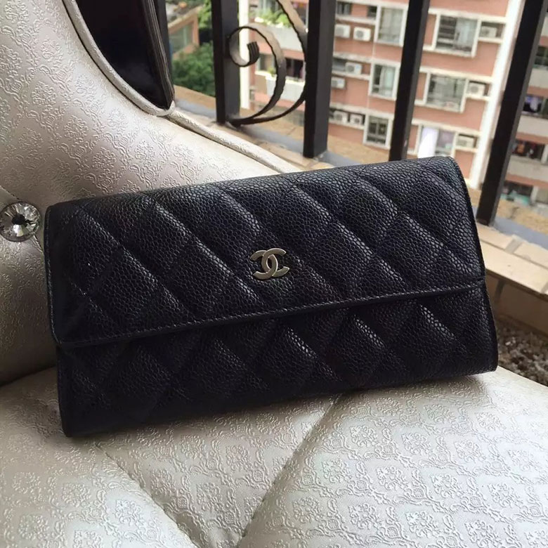 2016 Chanel Matelasse Bi-Fold Wallet Original Caviar Leather A50096 Black with Silver