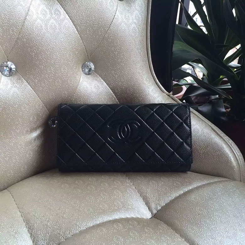 2016 Chanel Matelasse Bi-Fold Wallet Original Caviar leather A80696 Black