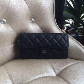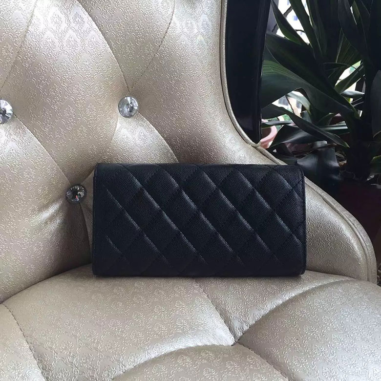 2016 Chanel Matelasse Bi-Fold Wallet Original Caviar leather A80758 Black