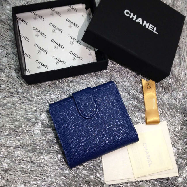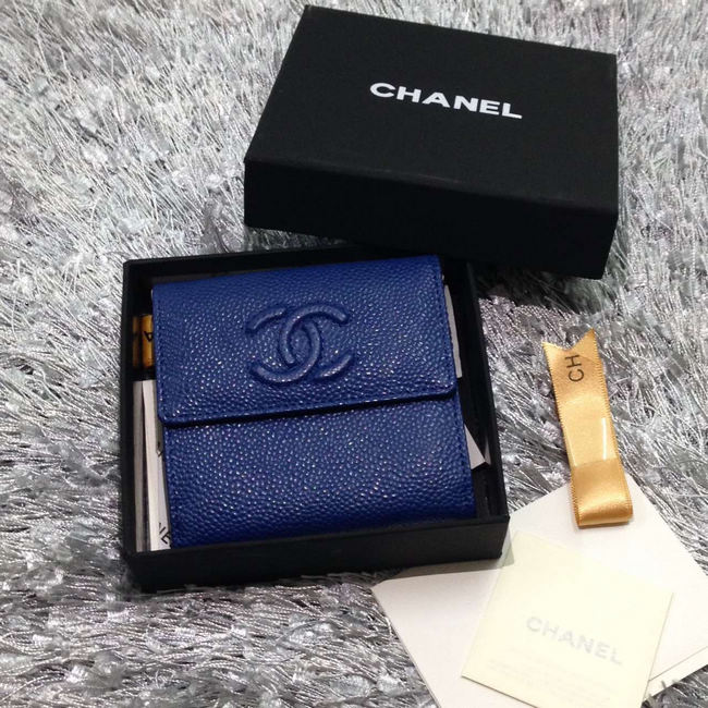 2016 Chanel Matelasse Tri-Fold Wallet Caviar Leather A48980 Blue