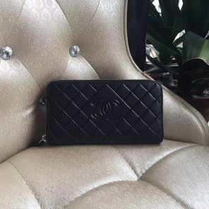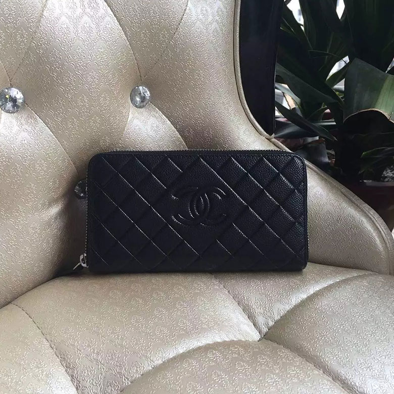 2016 Chanel Matelasse Zip Around Wallet Black Original Caviar leather A50097 Gold