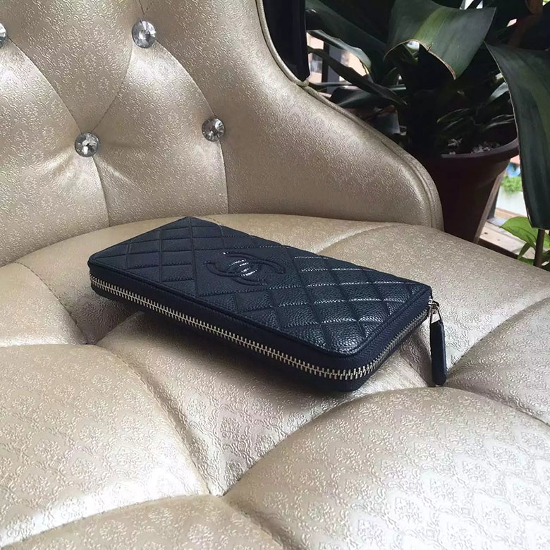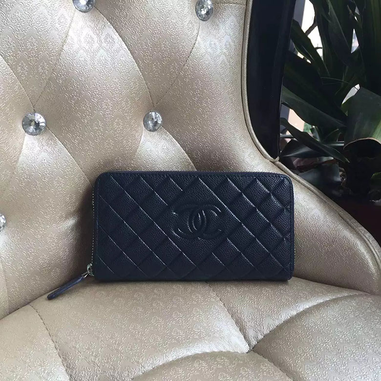 2016 Chanel Matelasse Zip Around Wallet Blue Original Caviar leather A50097 Gold