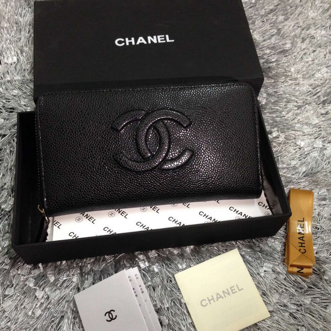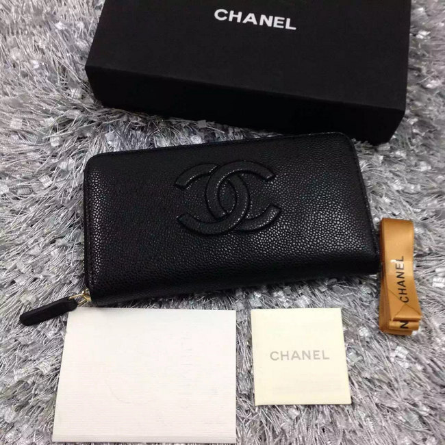 2016 Chanel Matelasse Zip Around Wallet Caviar leather A50071 Black